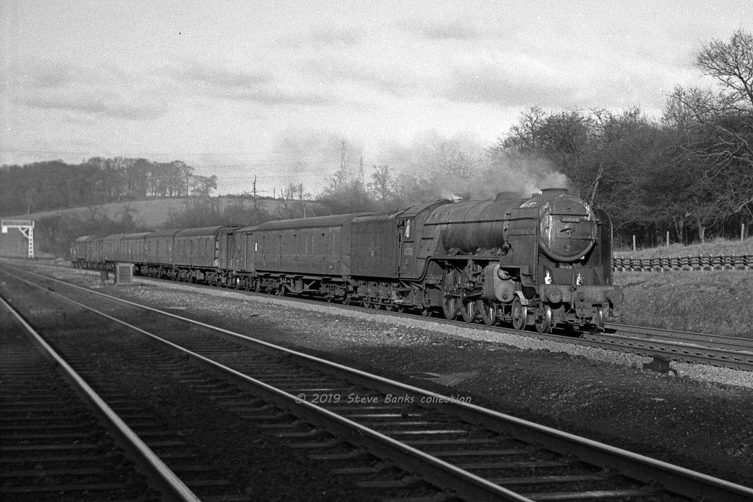 Looks like an Up train bound for London a large part of which was empty vans, many of them for the newspaper traffic which at this time included branded BG conversions and GUVs. See also the colour slide near the bottom of this topic.