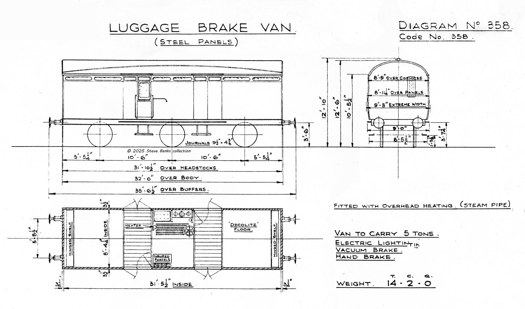 Thompson was a moderniser in many ways and the War forced him to use similar materials but his design was highly streamlined. Almost to the point of brutal simplicity, it could be said, which begs the question, was it more elegant? That's a moot question for opinions about both types are much divided! Either way, the SR may have been happy running express passenger trains with clunky-looking vans but the LNER was not and that would have influenced Thompson's design with all the bracing inside the body, flush doors, and the LNER practice of a row of toplights just under the roof. The only projection was the guard's ducket, and that was only on one side.