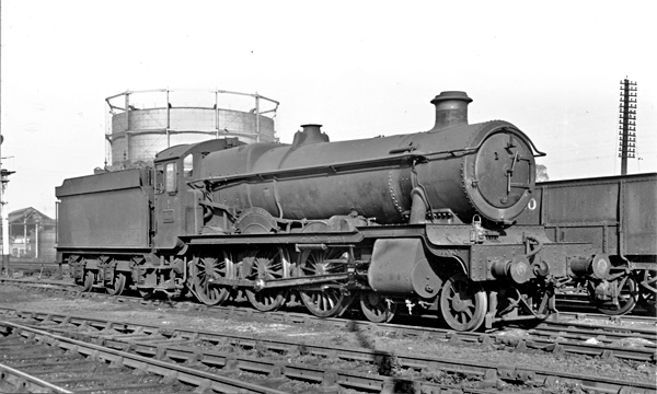 In this view from 1950, 6858 Cleeve Grange is at the north end of the shed. The loco appears to be in GWR condition without a smokebox number plate but a dust-covered shed plate. The tender, is too dirty to make anything out.