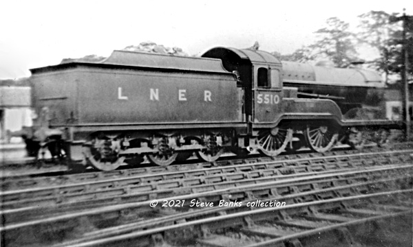 This view shows Neasden's D11 No 5510 Princess Mary running light engine past Banbury North signal box. The direction of travel cannot be identified but I would suggest that the loco has been turned and may be returning to Banbury to collect the Up working, which would be tender first to Woodford, run round the milk tanks and passenger brake van, and complete the main leg south chimney first.