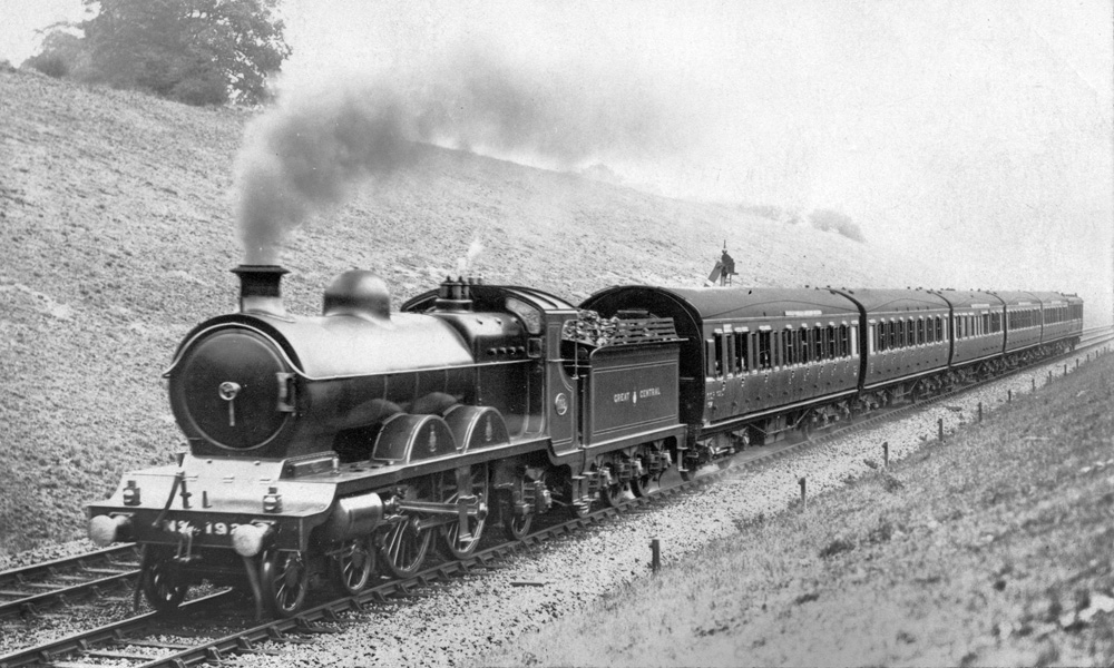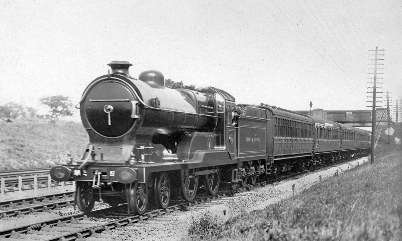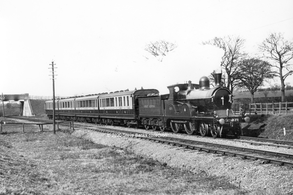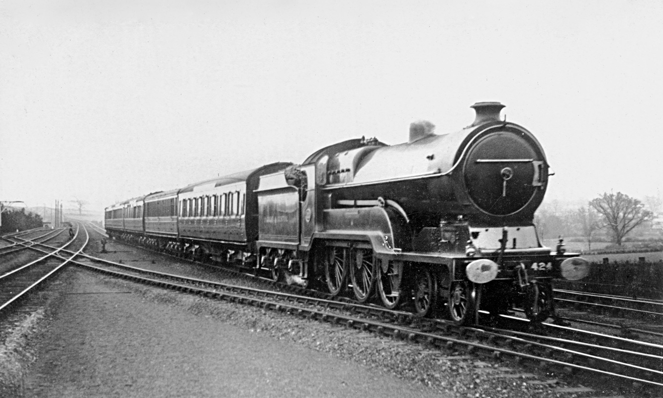 GCR Class 1 No 427 was captured in 1921 when, for a few months, oil firing was tried. The train was probably a Marylebone-Manchester and it's possible to see a 6-coach train with catering, at the head of which three strengtheners without destination boards had been added.