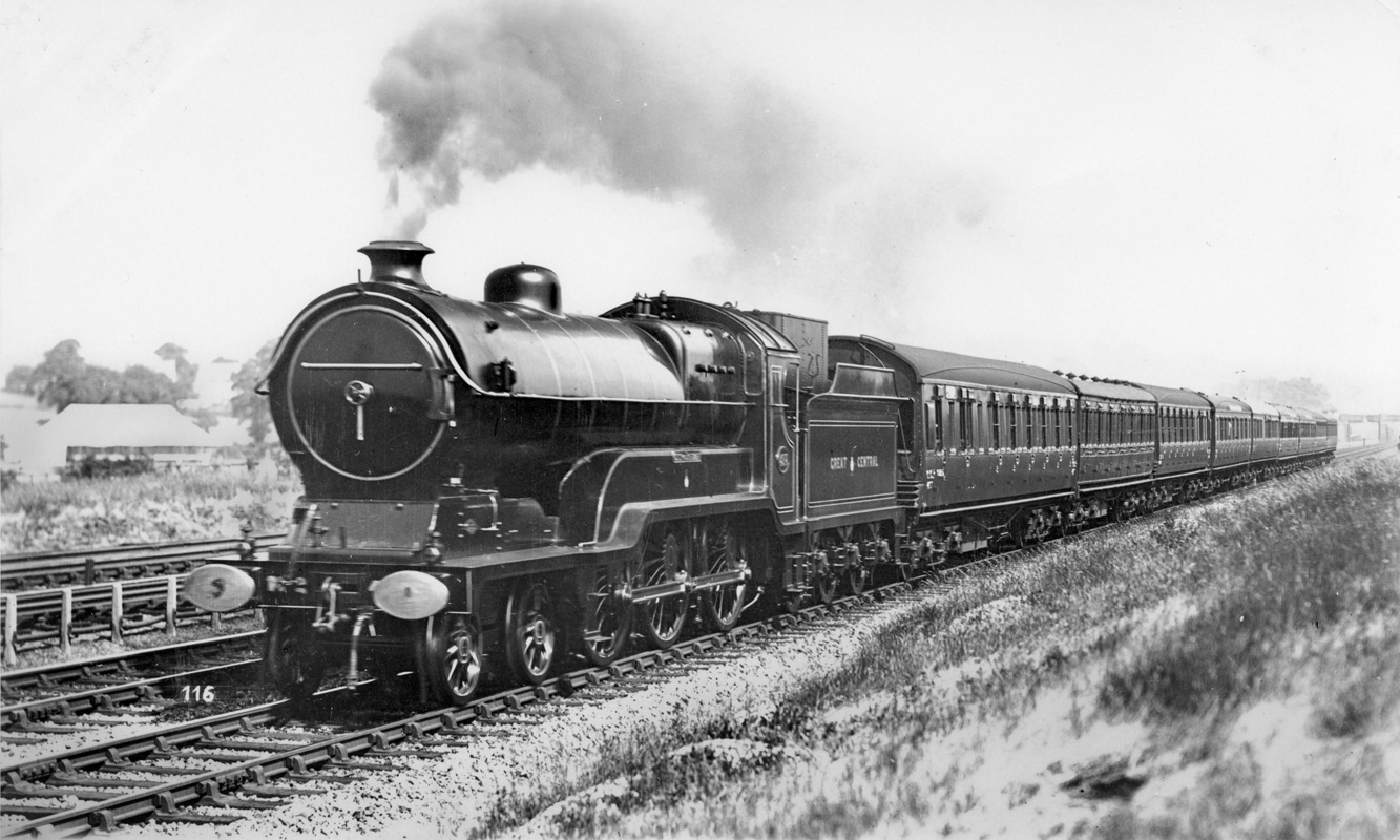 Ah, the sleek lines of another Class 11B, so sad that they were all rebuilt with larger boilers as Class 12D; more powerful they may have become, but at the expense of their good looks. The Edwardian era ushered in some of the most handsome locos the country ever saw, especially the 4-4-0s, and this was one of the best. No 104 is approaching with another four-carriage express. Photo: author's collection.