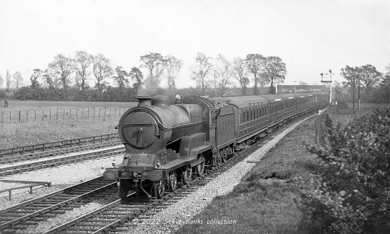An Up express is seen near Rugby in the mid-1920s behind B3 No 6164 Earl Beatty. There isn't much to go on except that that leading carriages contain a mixture of Robinson matchboards and a Parker-style brake-end.