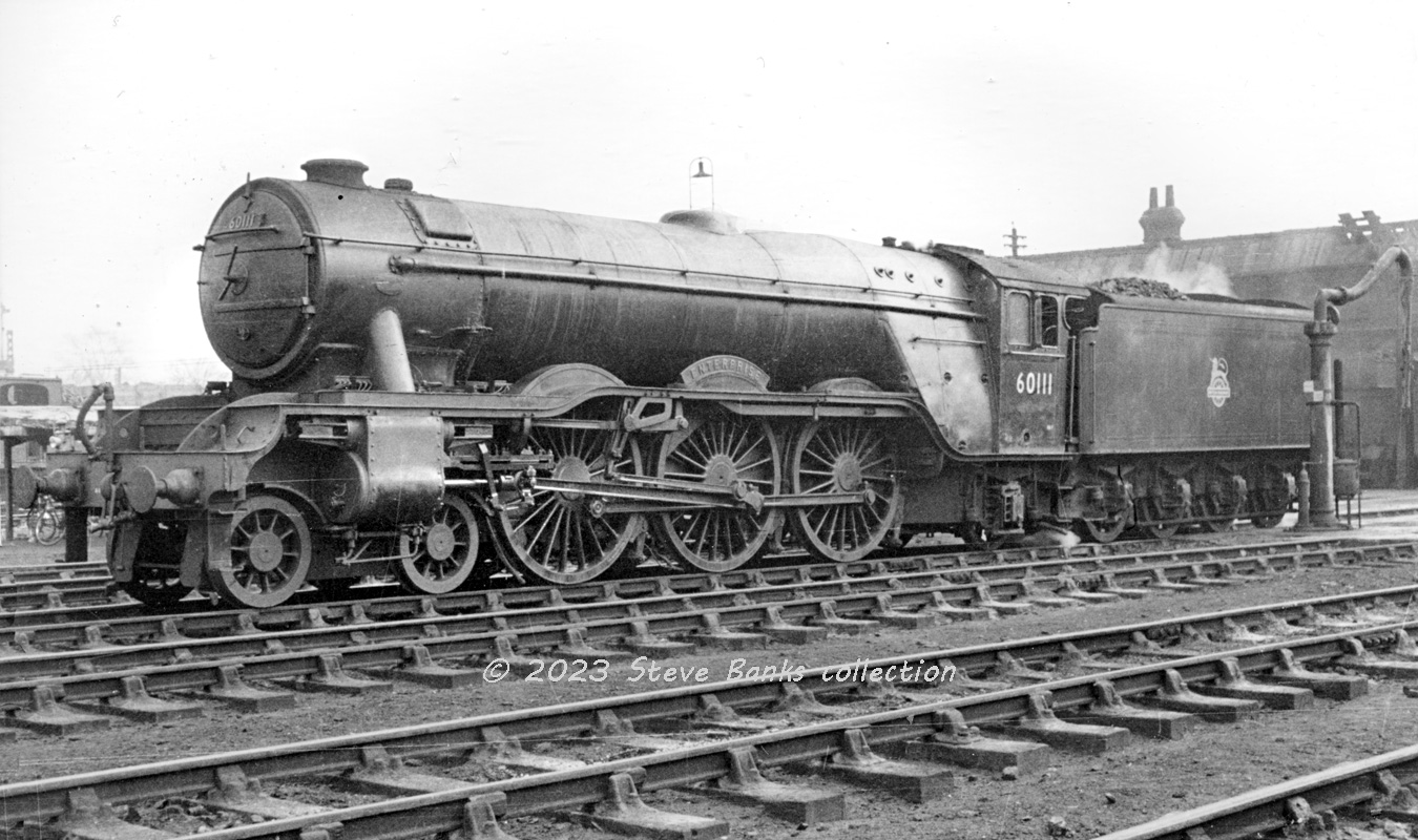 After WW2, Neasden's B17s were replaced by Gresley Pacifics such as No 60111 Enterprise, although not for all that long. It arrived around 20th February 1949 with a singe chimney and was sent to Leicester around 27-3-55. Photo: Jeremy Suter collection.