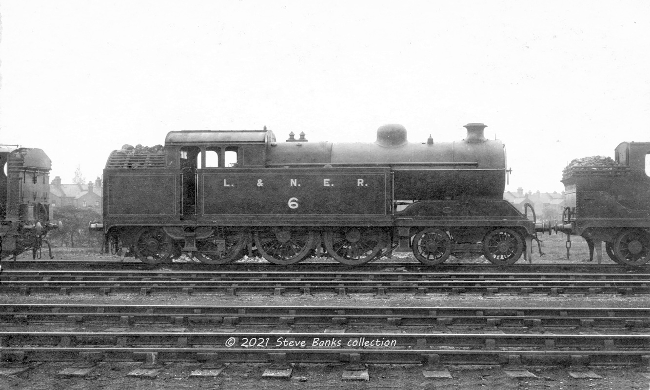 Not the best of prints taken against the light on a murky day but useful for showing a Robinson A5 soon after the Grouping. No 6 had been completed by the LNER on 10.2.23 with a side-window cab from the start (the earlier ones were converted). It was probably turned out in ex-GCR colours and lining but with "L&NER" and the GCR number. It carried this livery for just over two years, becoming No 5006 in May 1925.
