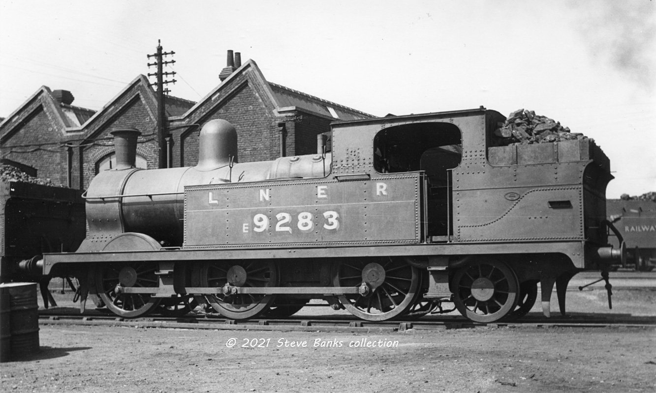 This N5 parked by the Shedmaster's office was originally No 5745 and at Neasden for 30 years, from 1922 to 1951. It gained a Thompson number in 1946 and a BR prefix as E9283 in December 1948. Photo: Real Photographs.
