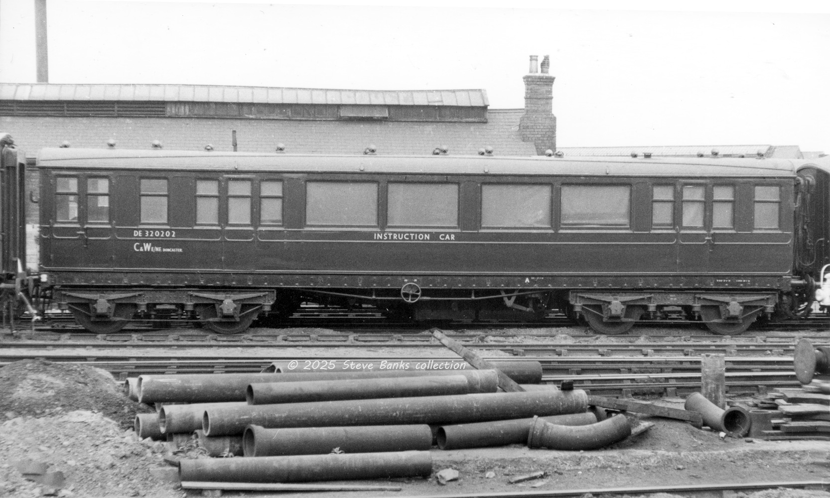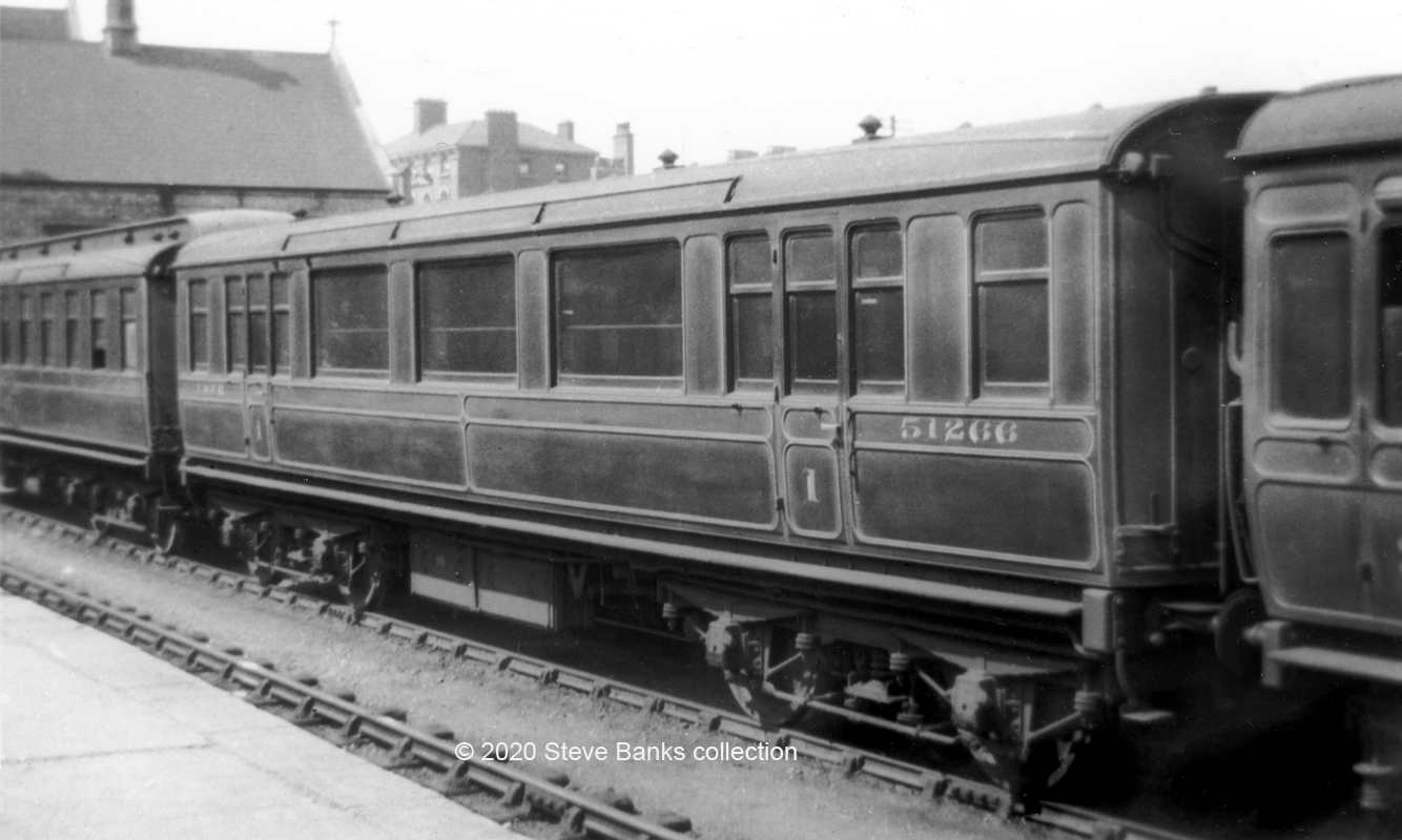 They had quite a long life of 54 years in passenger service until 1953, No 1316 then being converted into a C&W Instruction Car based at Doncaster for the E/NE Regions and living on until at least 1959 as DE320202, seen here at Doncaster Works on 30th May 1959 after a recent overhaul. Photo RS Carpenter. It is wrongly shown in Longworth's book as a "Pollitt" design. Sorry to keep flagging up this man's errors but they are so numerous that a corrected reprint is not likely for there is too much to undo with fake Diagrams and descriptions.