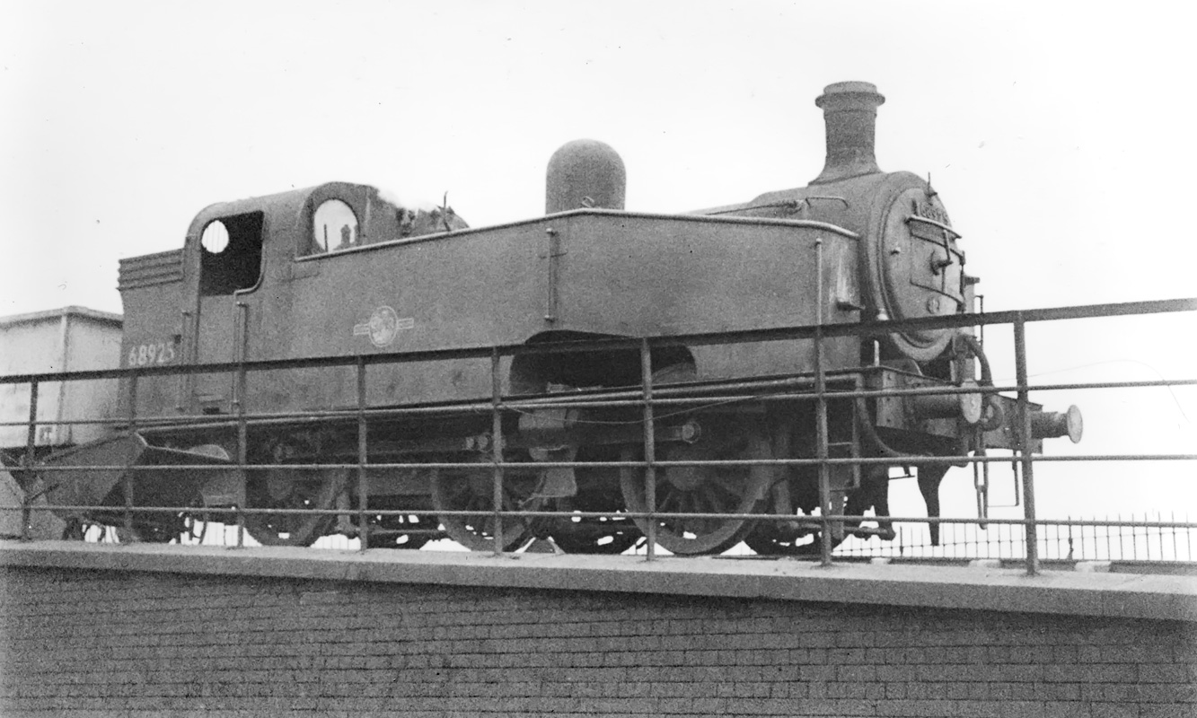 One of the J50 tanks, No 68925, is captured on the rise up to the coaling stage with mineral wagons. It must have required skill to charge this gradient and not overshoot at the top. Photographer unknown.