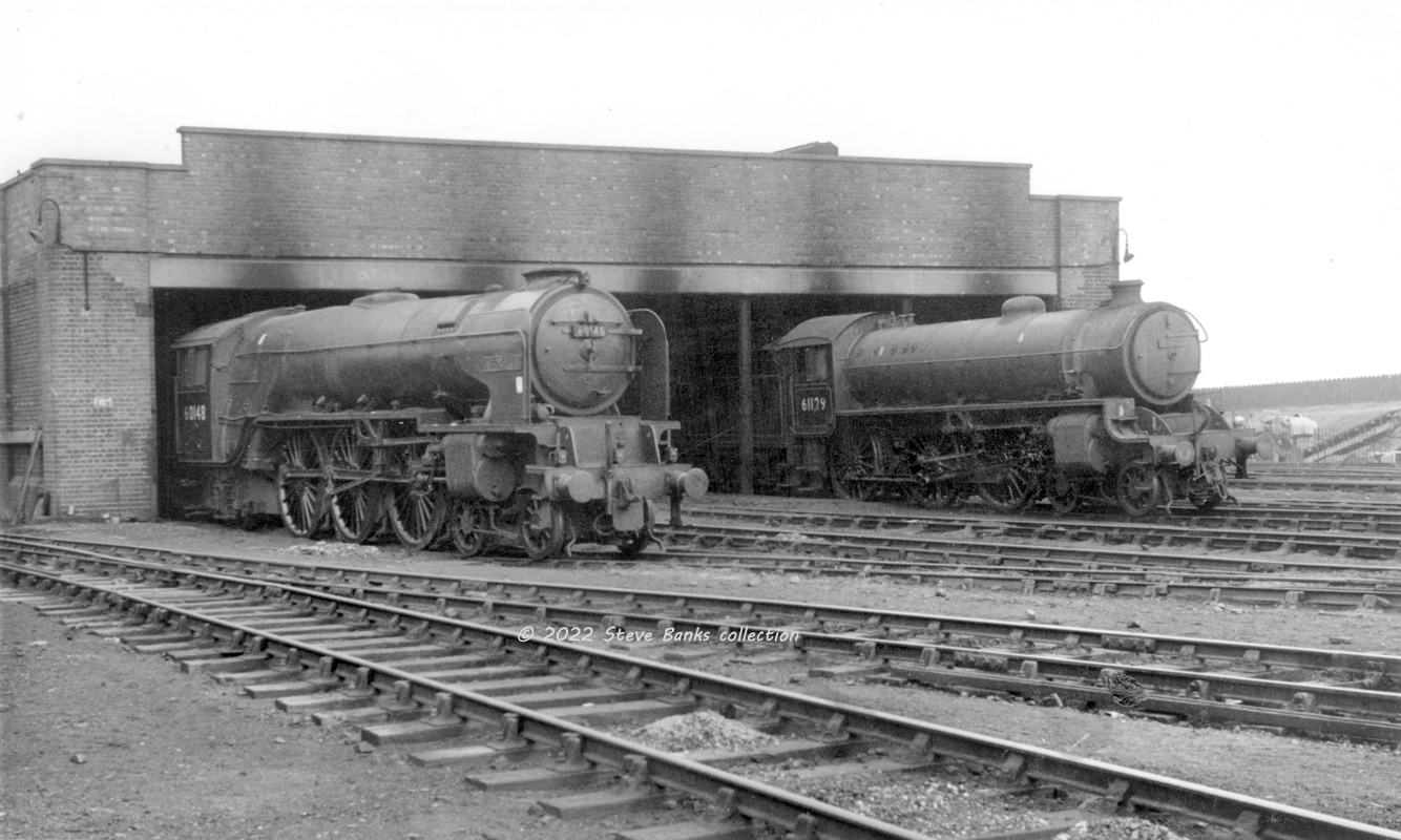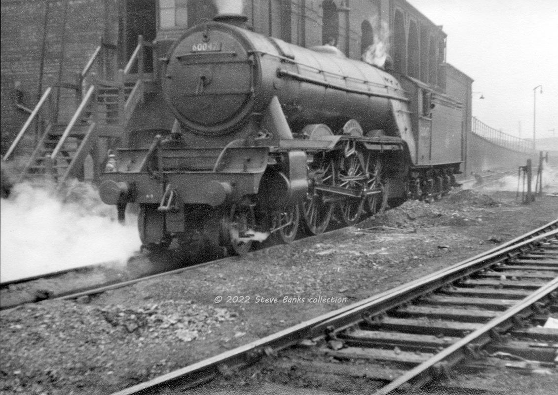 An early picture from me taken in 1961 with my first (pretty useless) bellows camera on Gratispool film, so my apologies for the iffy quality, showing the west end of the shed from the adjoining park. Posing in the middle is spanking clean, ex-works A3 No 60048 Doncaster. In the distance one of the J50 station pilots is approaching while to the right, lost in porridge, is one of the J6 0-6-0s, No 64203, 64226 or 64277. The class was withdrawn from Copley Hill within a year and was extinct by the summer of 1962. Photo: Steve Banks.