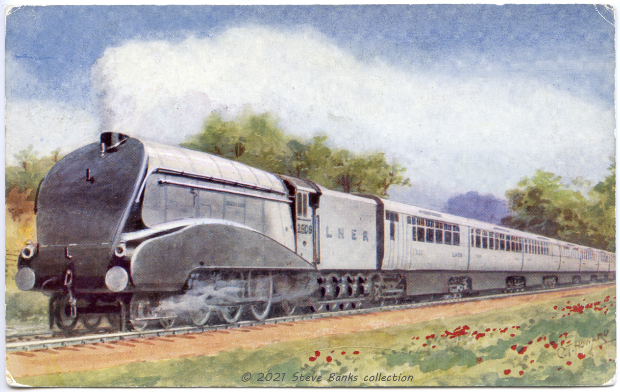 Introduced in 1935, Clive and I described how this express evolved in the book but could only offer two illustrations. For a while it must have been the most photographed train in the world, and being so photogenic, here are more views and how the images were treated. There will be several parts, covering the various changes: