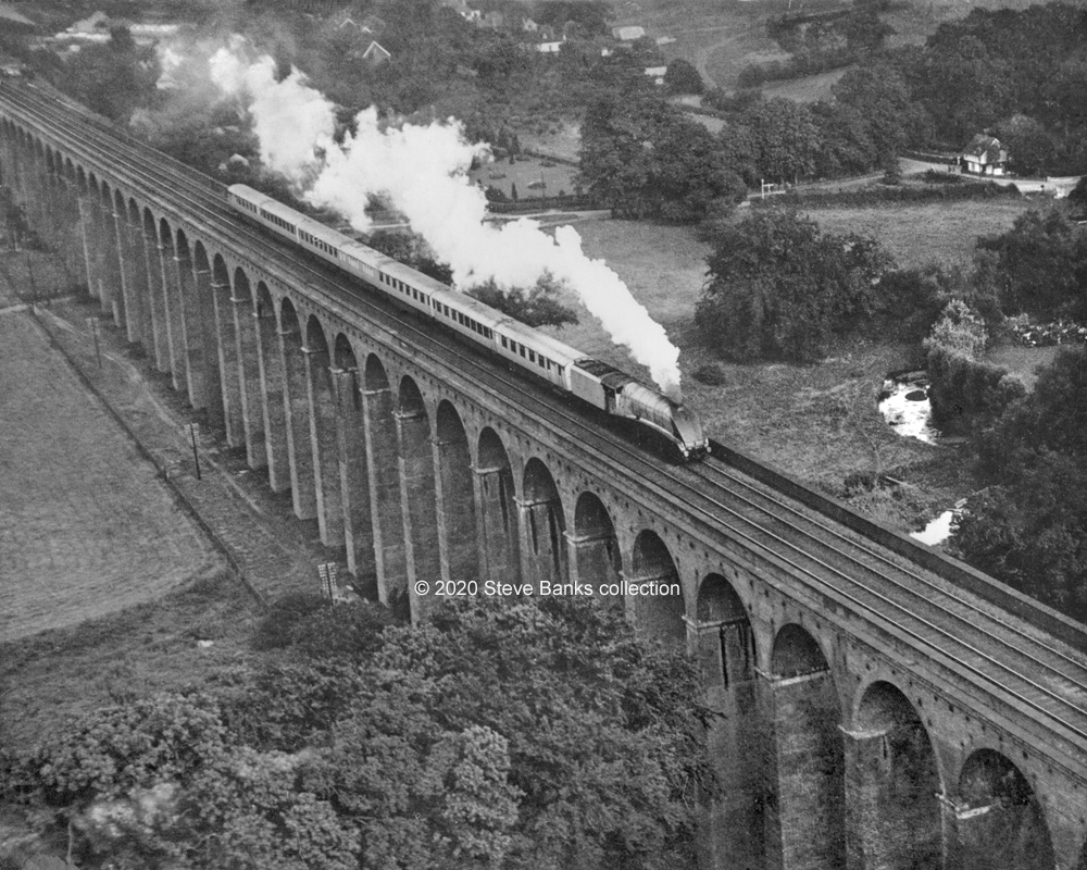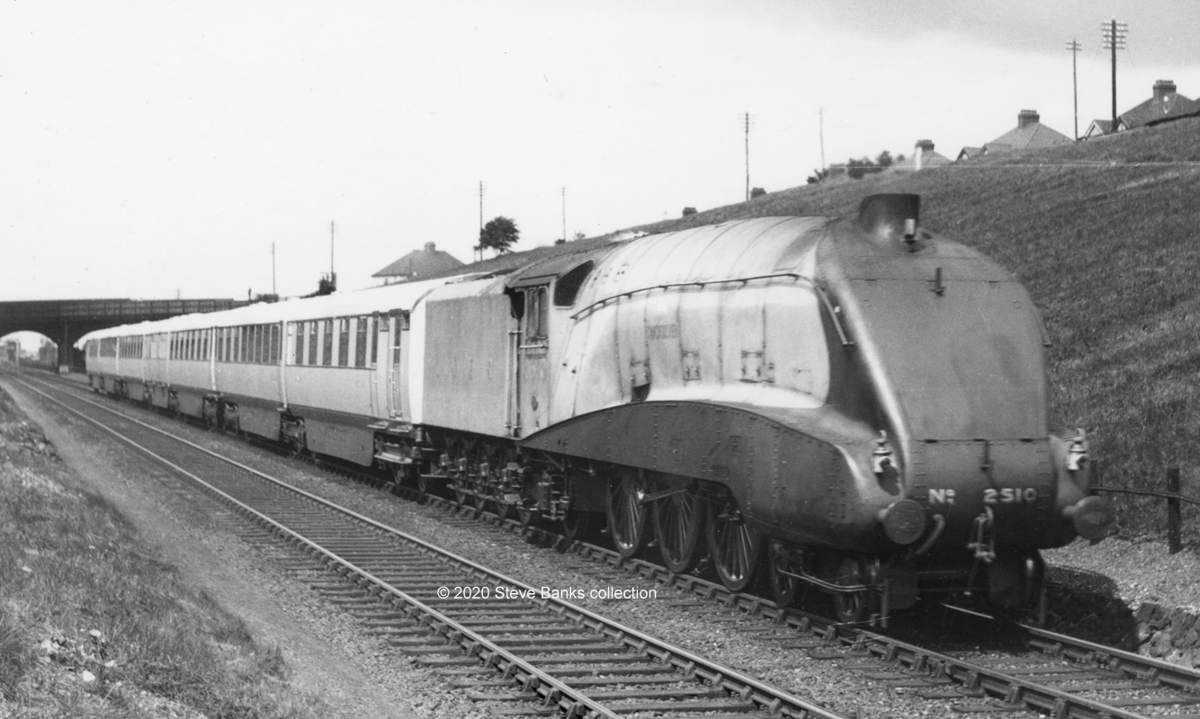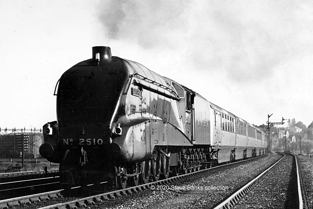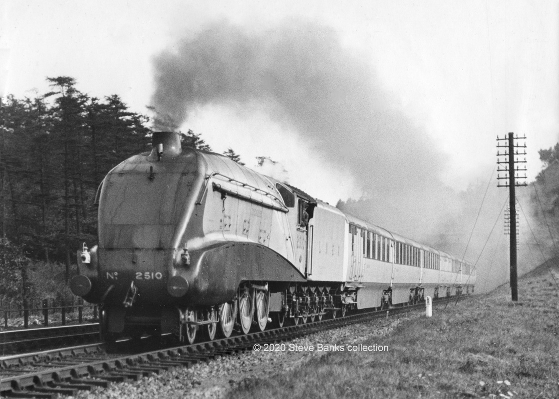 My apologies for showing this picture again (previously used in "LNER Flyers from the Air" in Back Track) but it is rather good and shows No 2510 Quicksilver in summer 1936 with the Up train on Digswell Viaduct. LNER Press Section TS/43, Author's collection.