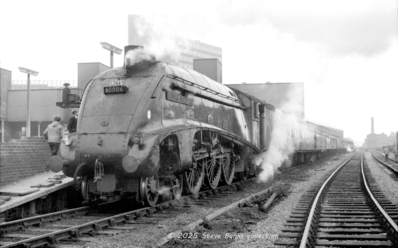 A4s from Gateshead were occasional vistors to Leeds City but Sunday 19th September 1965 saw Aberdeen A4, No 60004 William Whitelaw awaiting departure with an RCTS special "The Blyth-Tyne express". Photo: Steve Banks.