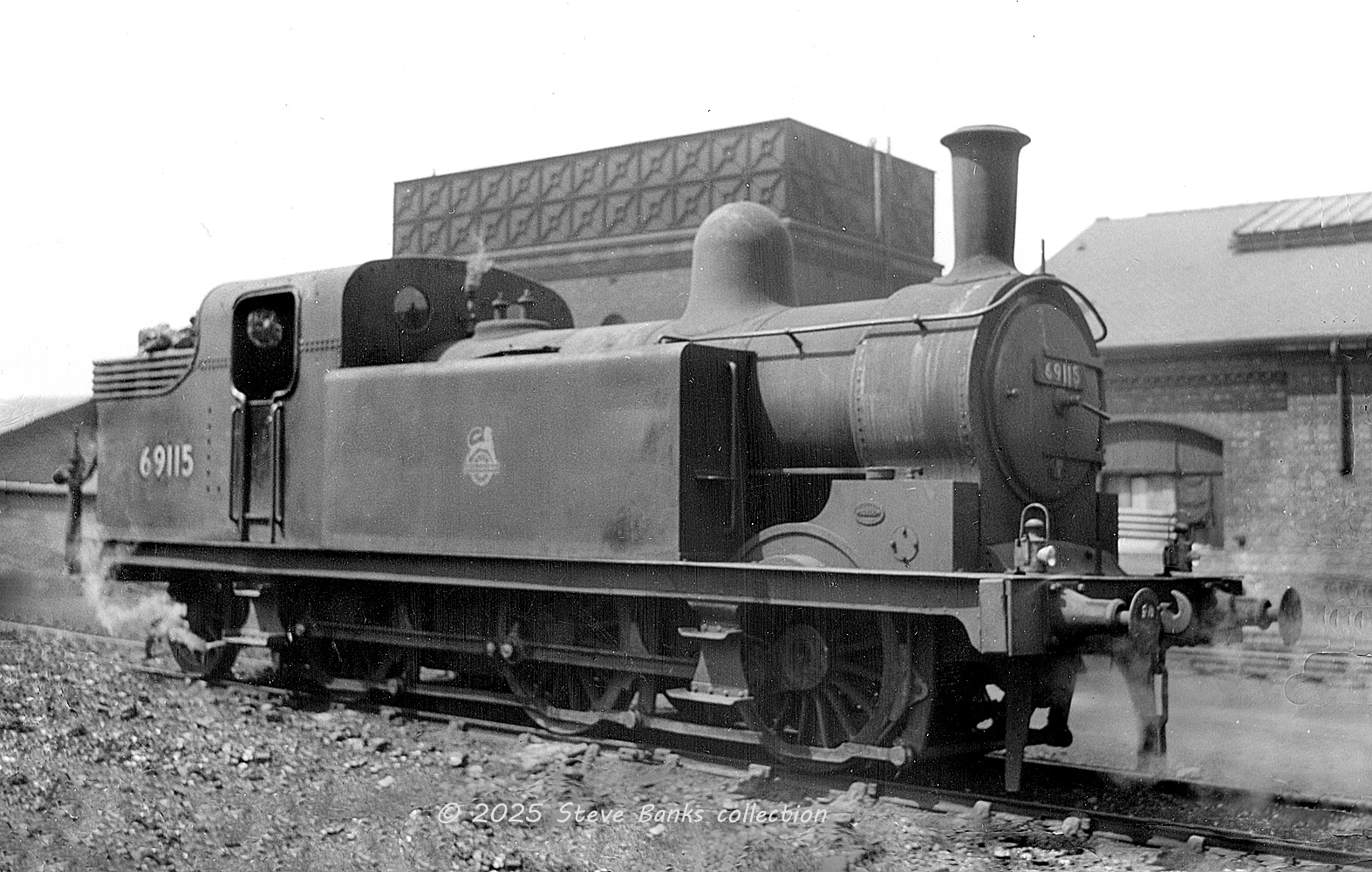Another example of an N13 in the early 1950s, No 69115 in front of the water tower and the west end of the original running shed before it was cut back. Author's collection.