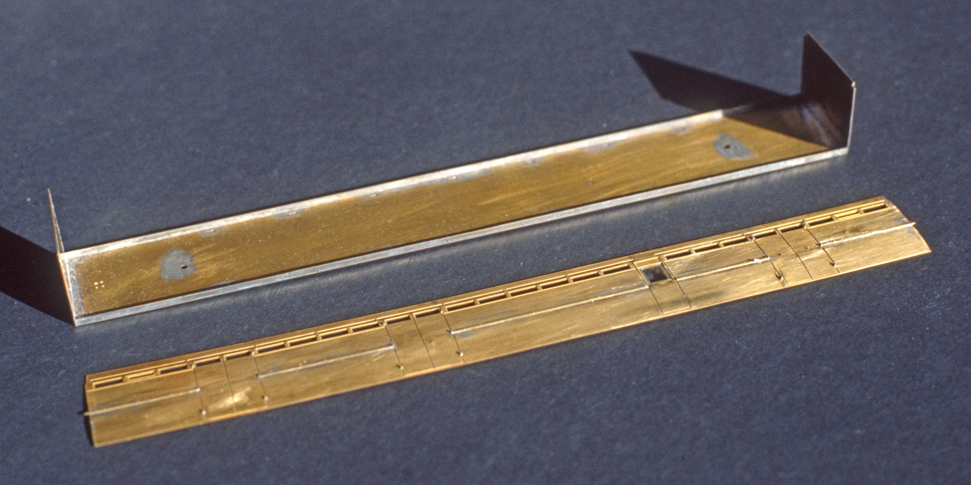 So we tried the next grade that is available, which is "fully annealed". Well, dear readers, the tumblehome was a dream to form: a fabulous profile that took no effort at all. But then, I dropped the side onto the floor... and it became a write-off. It was too soft, at least in 4mm scale. So we have been forced to stay with "1/2 hard" brass, and do the business of forming the tumblehome as before: around a piece of skirting board gripped in a Workmate. Panelled sides don't have this problem because the etching process removes one of the work-hardened skins on the brass sheet. At least we tried!