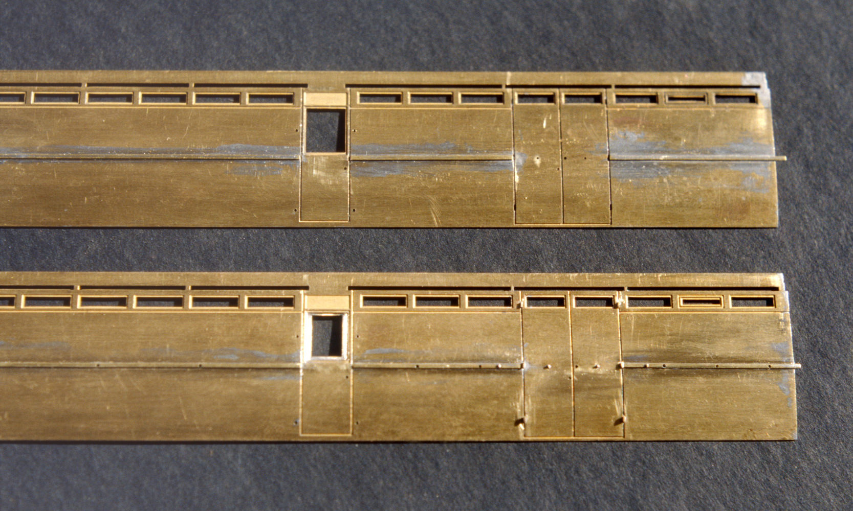 But first, I'd like to say that we tried something mildly heroic in an area that is the bane of etched brass coach building of steel or steel-panelled bodies: the grade of brass that is used normally is too springy and resists forming. In old money (I am going to use the old terms because they have the advantage of lucidity) the grade was called "1/2 hard". And it's not meant to be a formable grade. "1/4 hard" would be better, but it's not available. Comet Models offer a solution for Big Four era stock by pre-forming it with a press but, alas, it's an exaggerated LMS profile. No problem to many eyes I'm sure, but for Gresley and Thompson coaches, the tumblehome was quite gentle and from the mid-waist.