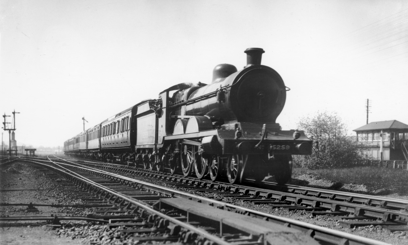 This picture tells quite a story for it is an example of a long distance Ordinary Passenger train captured at Handsworth behind Sheffield's C13 No 6062 with a Retford-Sheffield train that had probably been made up with non-gangwayed carriages among which there would been a good few lavatory stock, of which plenty had been built c1905 as 50' clerestories (and were also used on trains between Sheffield-Cleethorpes). However, there was a trend from the 1930s of replacing such stock with gangwayed carriages all of which had lavatories as a matter of course. On the NEA this was done by building new 61'6" stock but as this photograph shows, the GC Section did it by installing old gangwayed carriages, and possibly before the NEA. The mixture of carriages shows what the GC Section now had spare and could utilise: