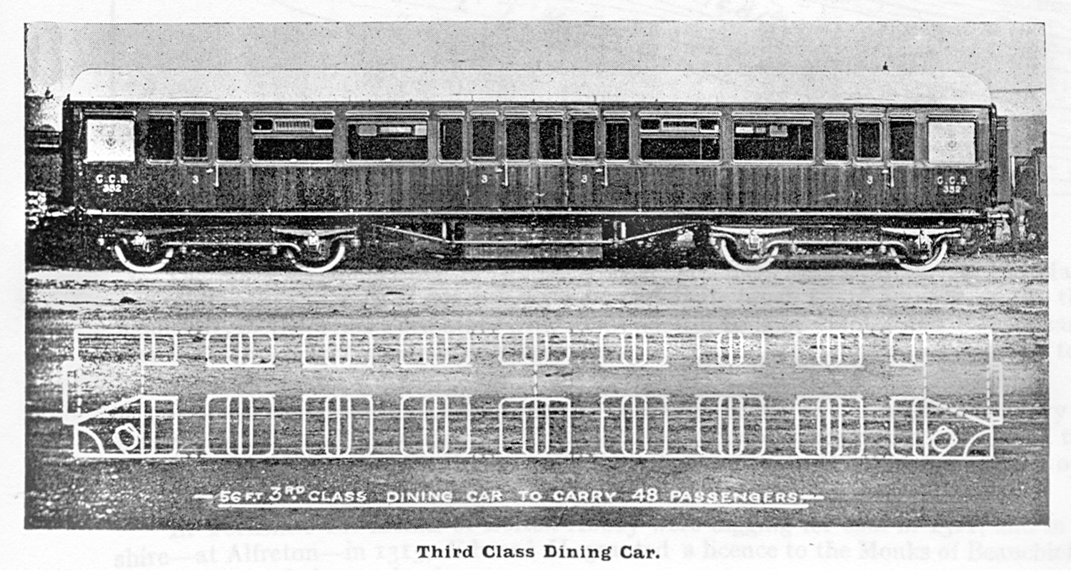 The title on the GCR Diagram had originally been THIRD RESTAURANT but provision of portable tables instead of fixed ones was a throwback to the past which would not have made life easier for the staff. It's all the more surprising because Robinson had built 3rd class dining cars with fixed tables in 1906-7 (body panelling to the Parker style). The GCR seemed wedded to old-fashioned concepts in both the restaurant composite and these dining cars.