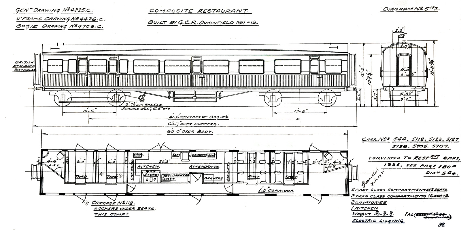 The Diagram for GCR 5M2 (7 built, the most numerous version) shows the classic layout of the time with the kitchen in the middle and the two classes of catering on either side. However, the approach was getting old-fashioned even if differences between the classes extended beyond the leg room.