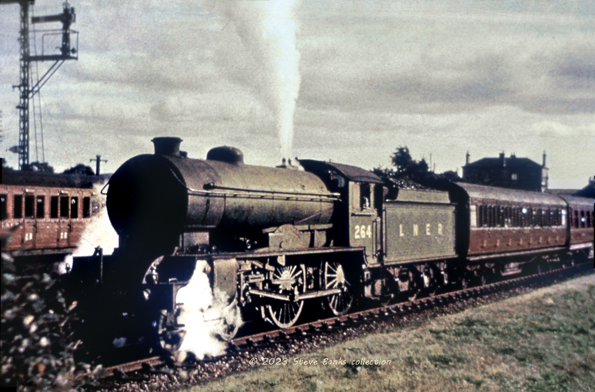 Routine OPs in this district were provided with ex-GNR 6w carriages, mostly articulated. That's not what we're seeing here, but a mixture of ex-GNR and LNER gangwayed carriages with a single, token destination board. Indeed, had the BCK been serving as a through carriage, it would have been provided with destination boards on the roof. It's useful to bear in mind that BCKs were built for the through traffic and when replaced by a more modern one, they drifted into secondary services, which is clearly the case here. For all these reasons I believe that the picture shows a Saturday "made-up" formation by Doncaster, behind a mixed traffic 2-6-0 from Doncaster, working back. In other words, the 2.44pm from Leeds Central.