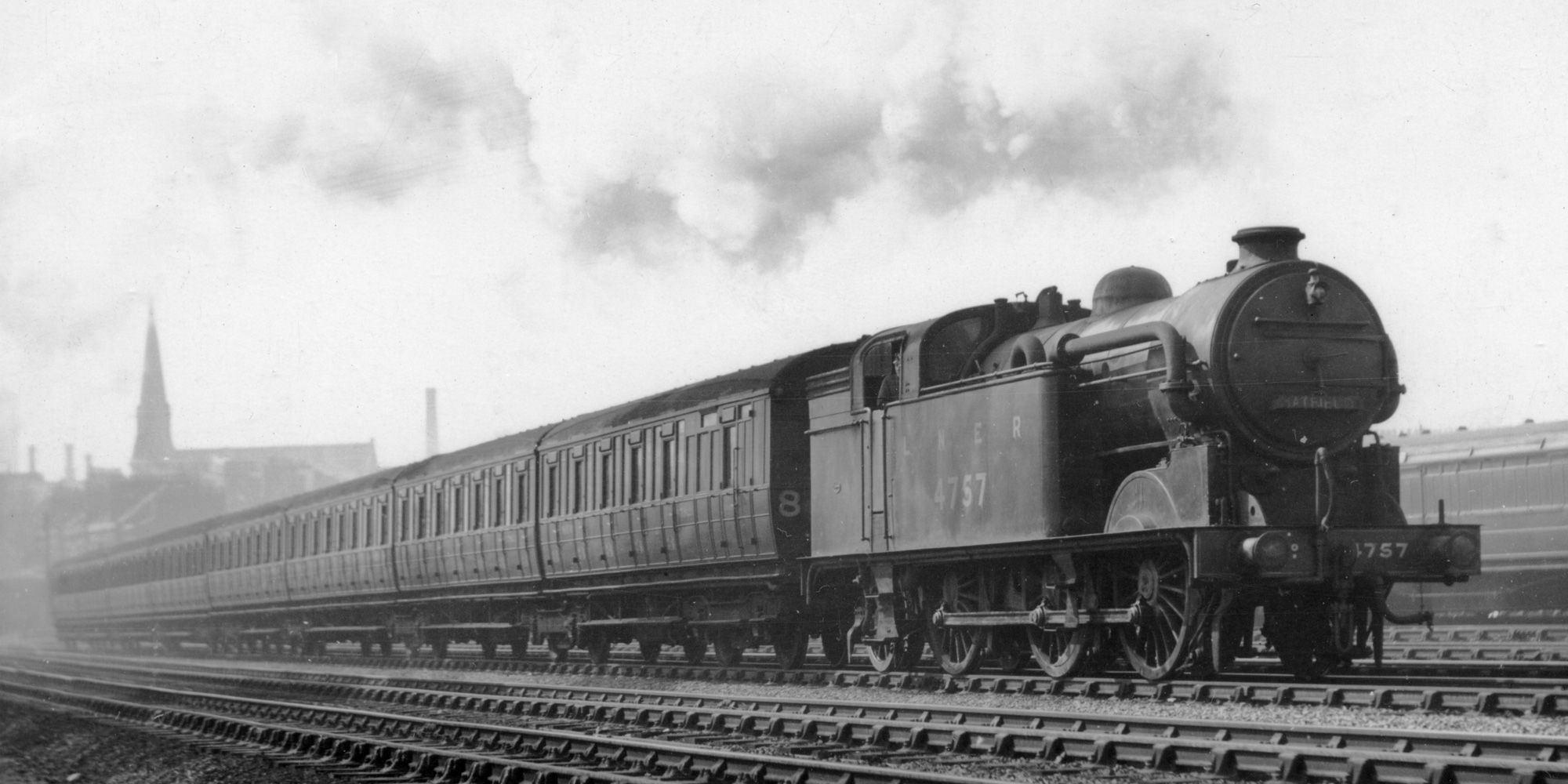 N2 No 4757 has an LNER "quad-art" train as it attacks Holloway bank on the exit from King's Cross in 1937. The destination board on the loco declares that it's for Hatfield. Note the ventilator bonnets over the doors. Photo: Photomatic.
