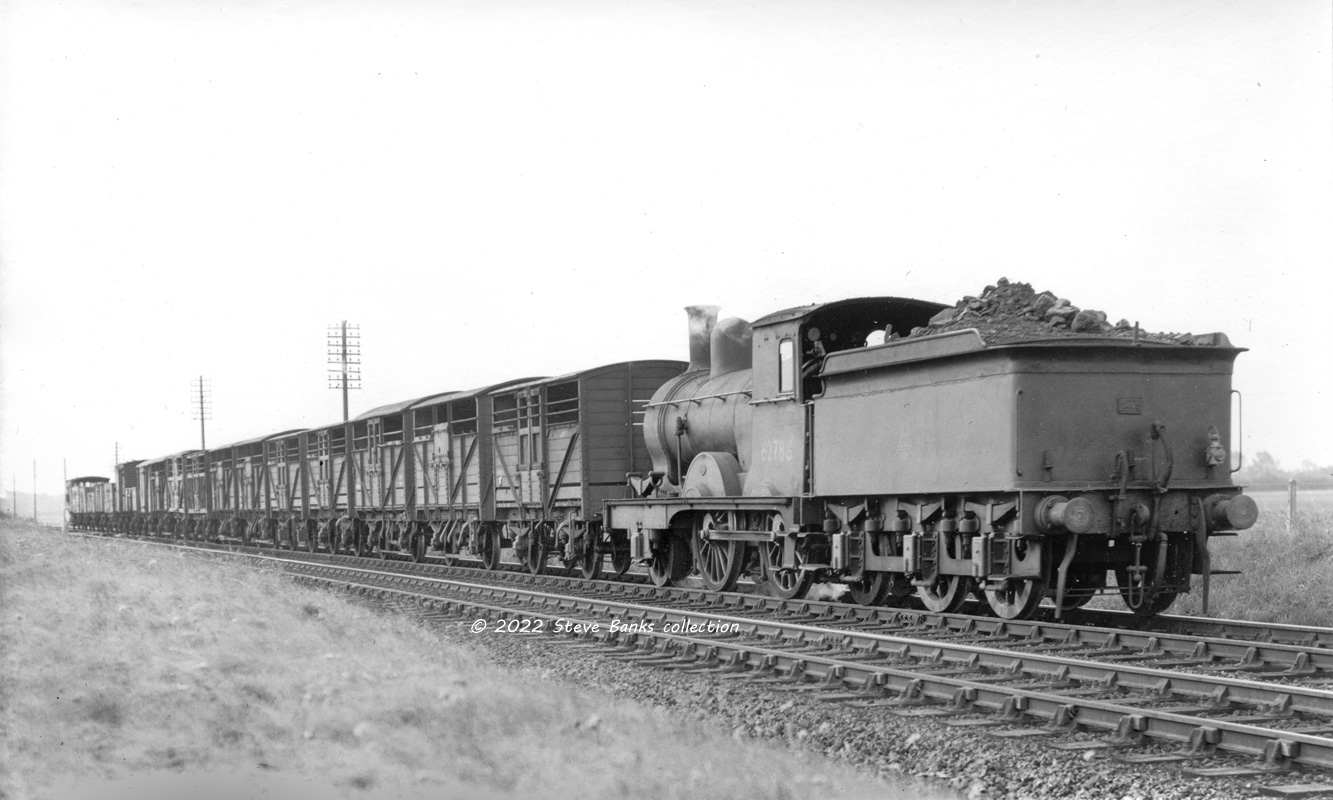 This undated view from the mid-1950s somewhere in East Anglia shows E4 2-4-0 No 62788 (Norwich or Cambridge) with a pick-up goods of 18 wagons, the first ten of which are cattle wagons. As far as I can tell they are: