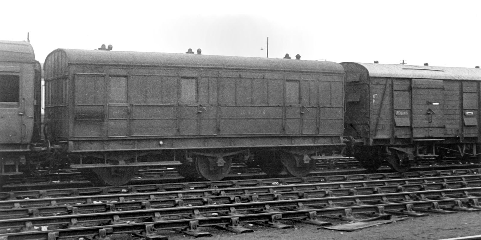 A 6-wheel chassis was fitted which by 1921 was no longer being used for new passenger carriages anywhere, with the notable exception of the aforementioned ones on the NER. Lighting was by gas - which was also unusual for new construction of such vehicles, suggesting that economy was a factor. The fittings, or some of them going by the gauge carried on the solebar of an example seen in the late 1950s, had come from the Midland Railway. Electric lighting was never fitted. It's easy to forget that only the wealthy companies could afford to re-equip their carriages this way and gas-making plants continued to serve well into BR days. By then these vans would only have been around 30 years old, the outer appearance was still good, and withdrawal was probably enforced on other grounds. They were certainly less efficient by then, being rated to carry only 4 tons, less than half of a modern vanfit.
