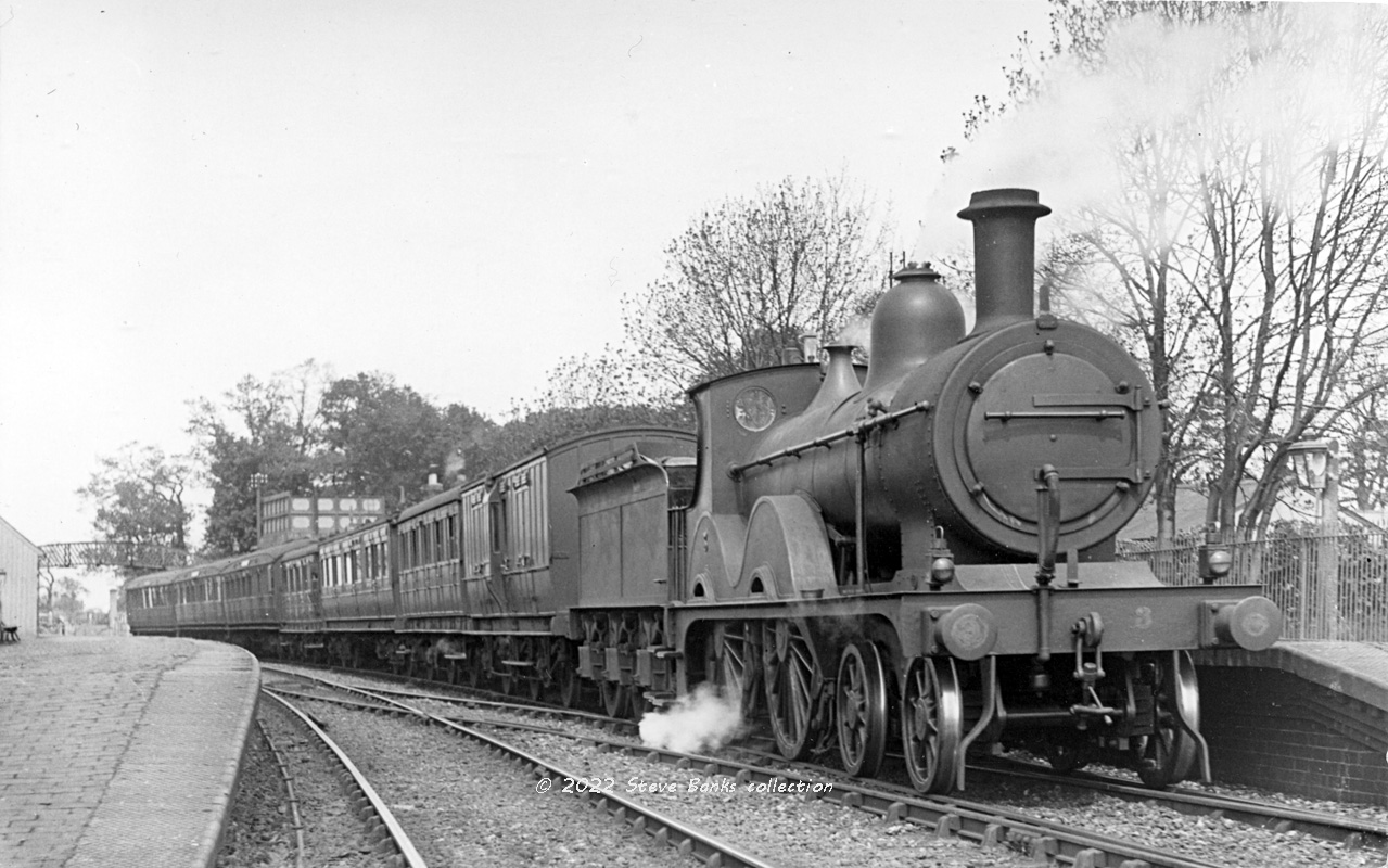 The oldest picture to hand is dated by LGRP as "1923" (same as another LGRP photo in this topic) and may thus be an estimate and is headed by Class A 4-4-2T No 9. It's also very uneven and a complete repair is not possible. However, both pictures show 5-coach trains, this one made up: