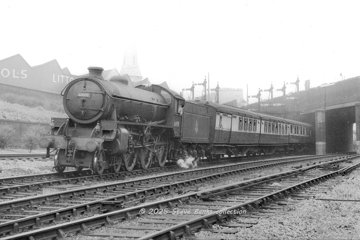 An undated view from the early 1950s at Holloway shows B1 No.61408 (IMM) with an Up secondary express from Cleethorpes with second series SQS leading - a twin and the enlarged 61'6" composite behind it. Photo: author's collection.