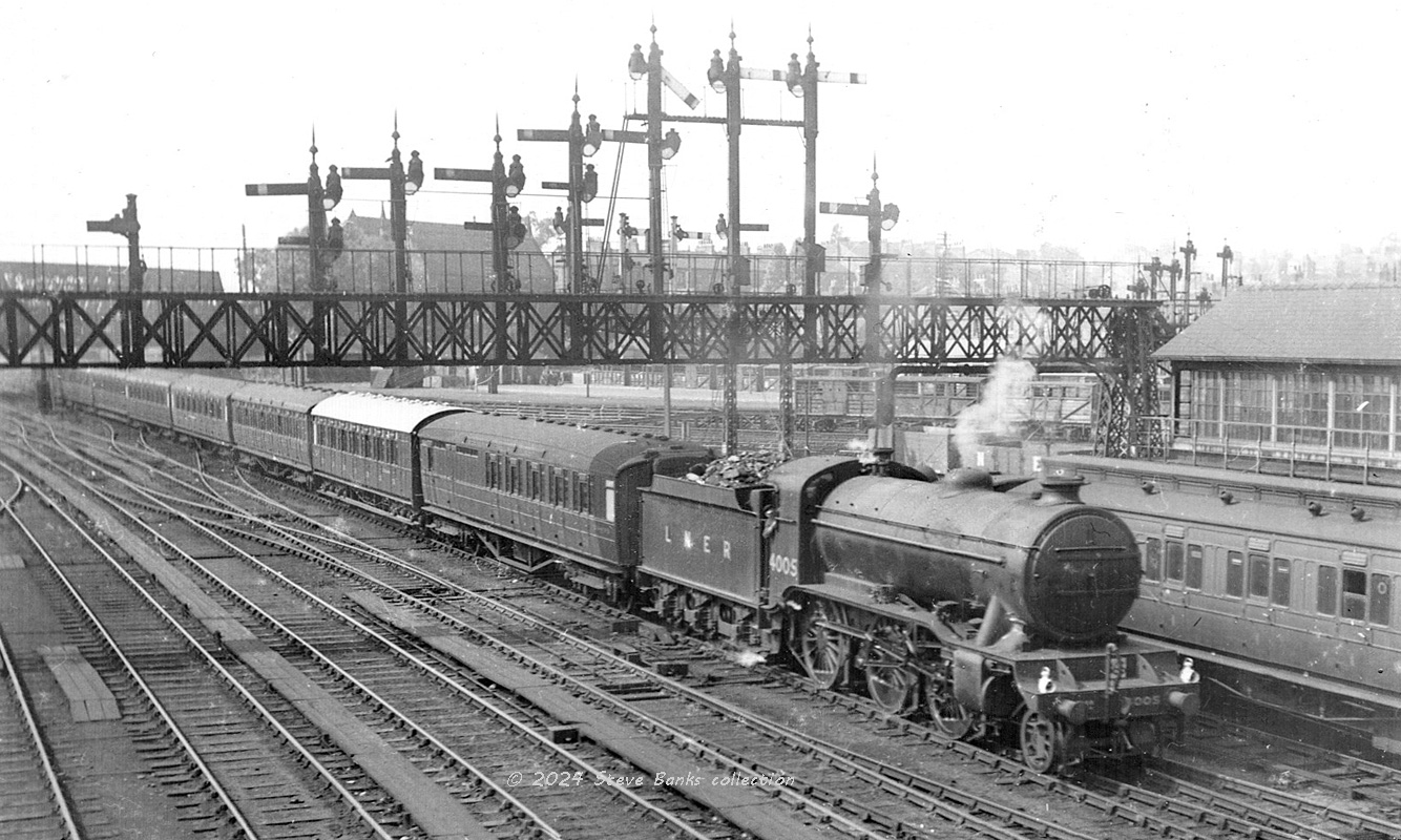 Moving around the country to show regional variations, here's a service on the NEA in 1937 approaching York late morning behind K3 2-6-0 No 4005 (DON). No catering can be seen and the carriages are a mixture of LNER gangwayed; possibly an ex-ECJS; and at least two ex-NER. Which means that almost a third of the carriages were of pre-Grouping origin.