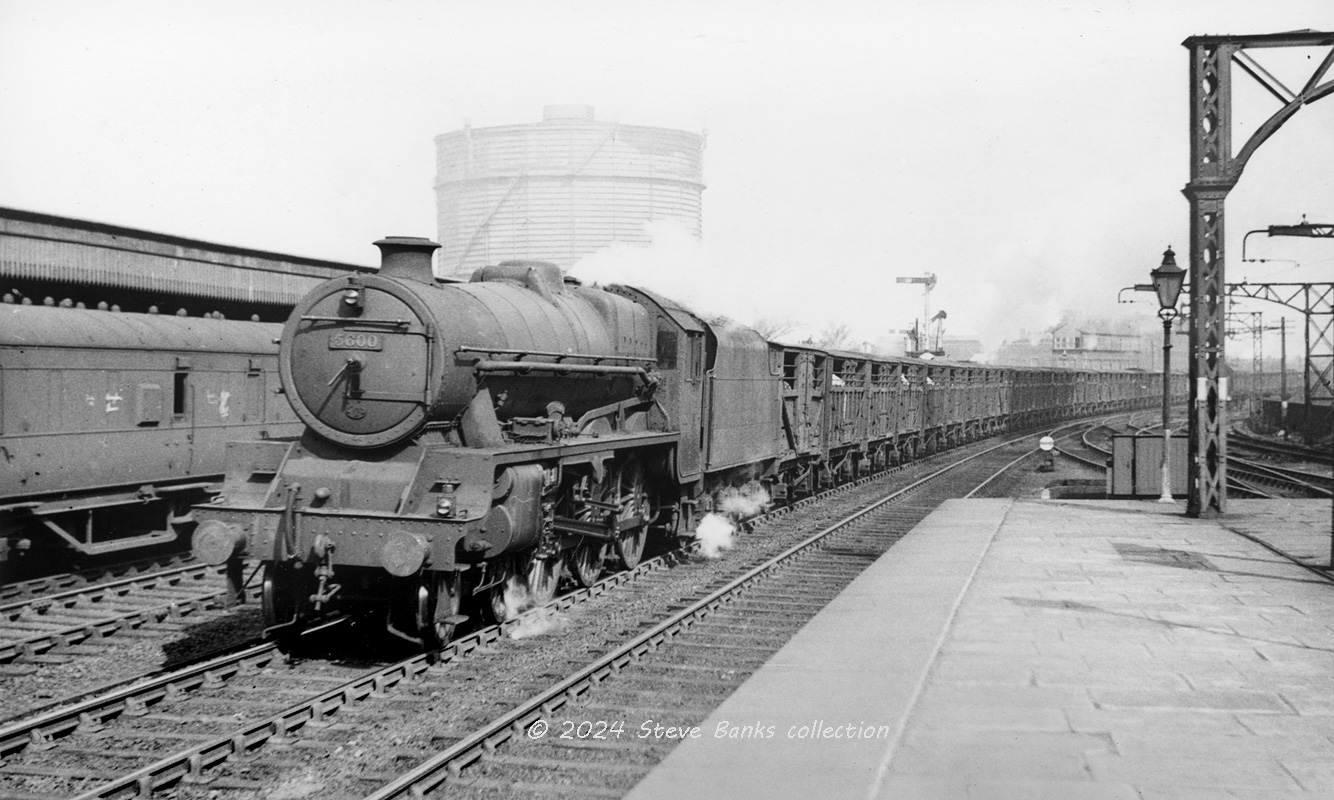 It's 1948, the first year after Nationalisation, and un-named Patriot No 5509 has a Down express goods train at Berkhampstead. This view is also under "LNER cattle wagons" where the train and its wagons are analysed in detail. 9th October 1948. Photo: H.C. Casserley.