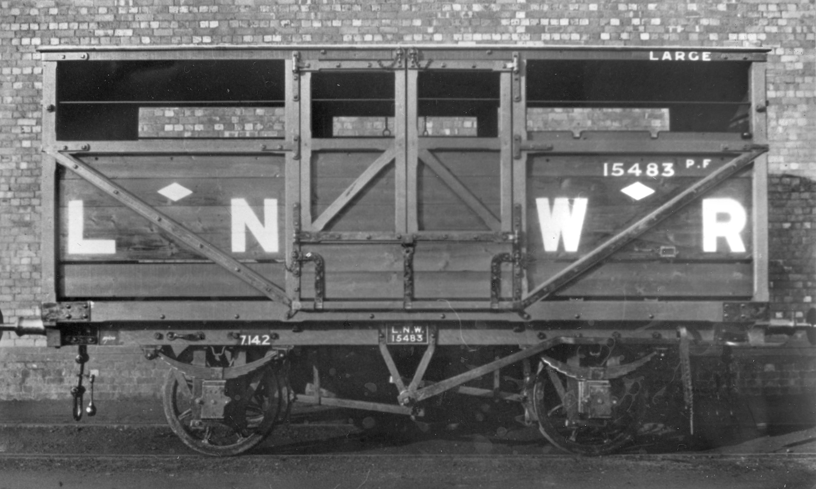 My apologies for the quality for despite my attempt to improve it, this copy of an LNWR official is not great. However, it does show an LNWR Large cattle truck with manual brake and, at least as yet, no through pipe. A numerous type that became common user after the Great War and can be seen in many train photographs. Photo: K. Taylor collection.